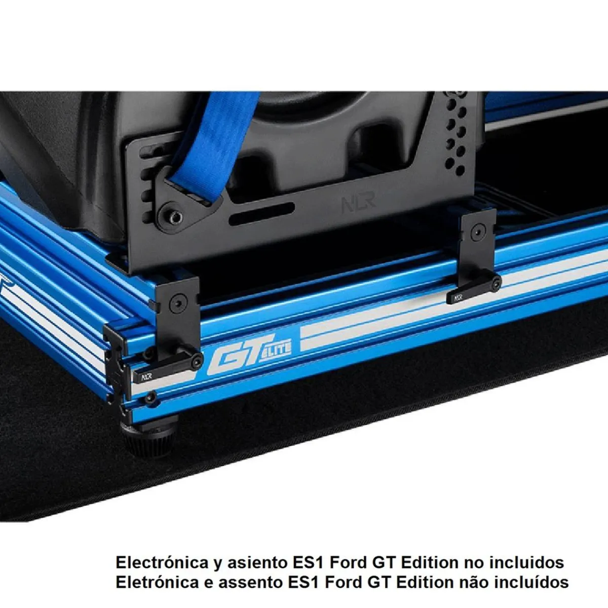 El ES1 Ford GT* proporciona componentes como el arnés de cuatro puntos de la marca Team Fordzilla y la alfombrilla de la marca Ford GT. Con la compra del Kit Adaptador de Movimiento GTElite* de Next Level Racing, el GTElite puede ser compatible con los productos de movimiento existentes y futuros de Next Level Racing.