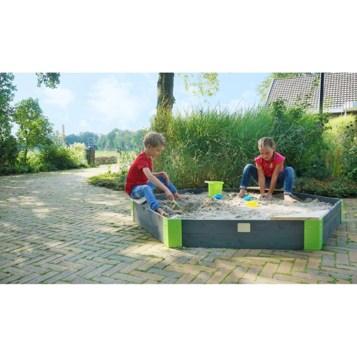 Exit – Arenero de madera Aksent Hexágono 200 x 170 cm, un arenero con forma de hexágono para divertirte y dejar volar tu imaginación.