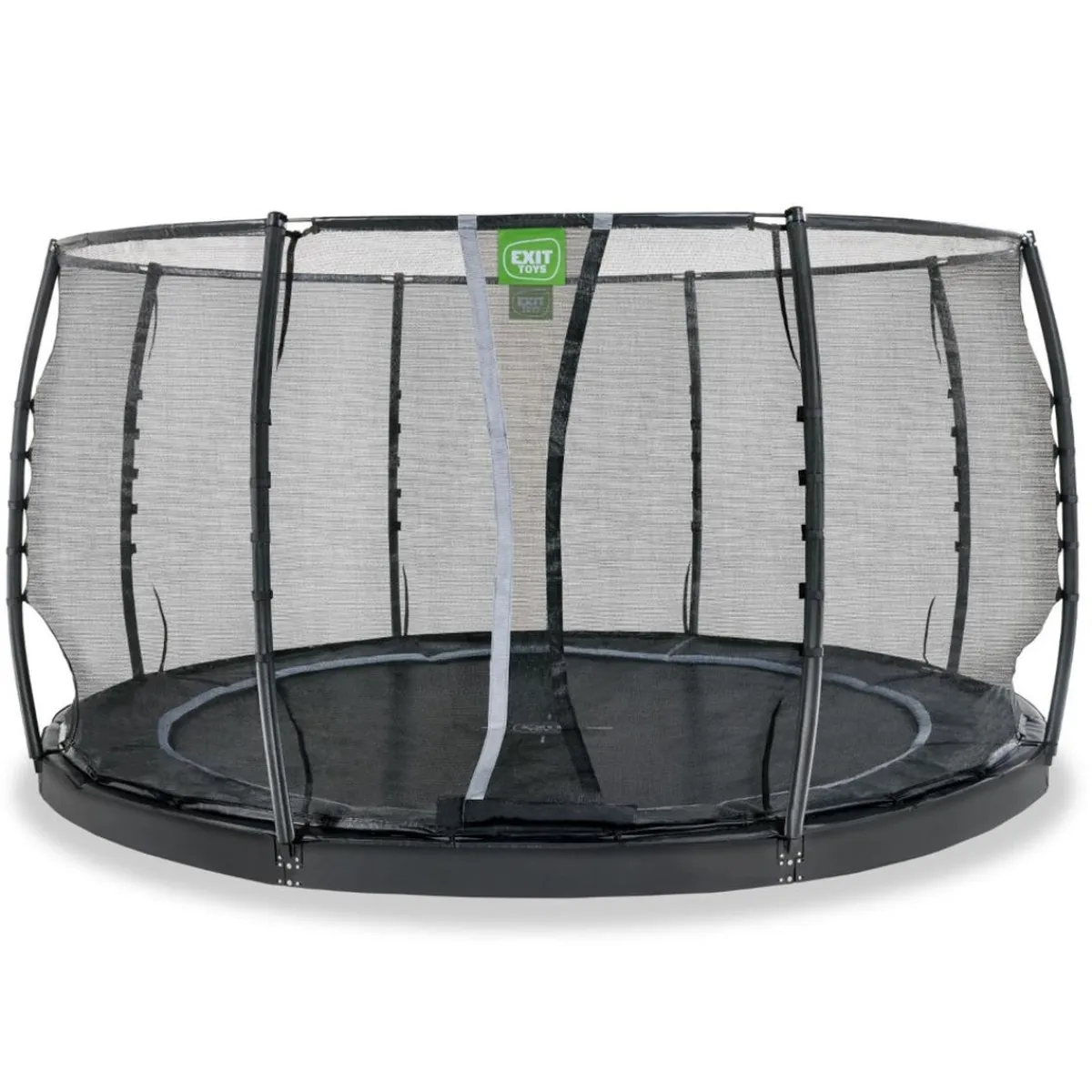 Exit – Cama elástica de suelo Dynamic 427 cm negro con red de seguridad, un trampolín redondo a nivel del suelo de color negro mate con calidad superior.
