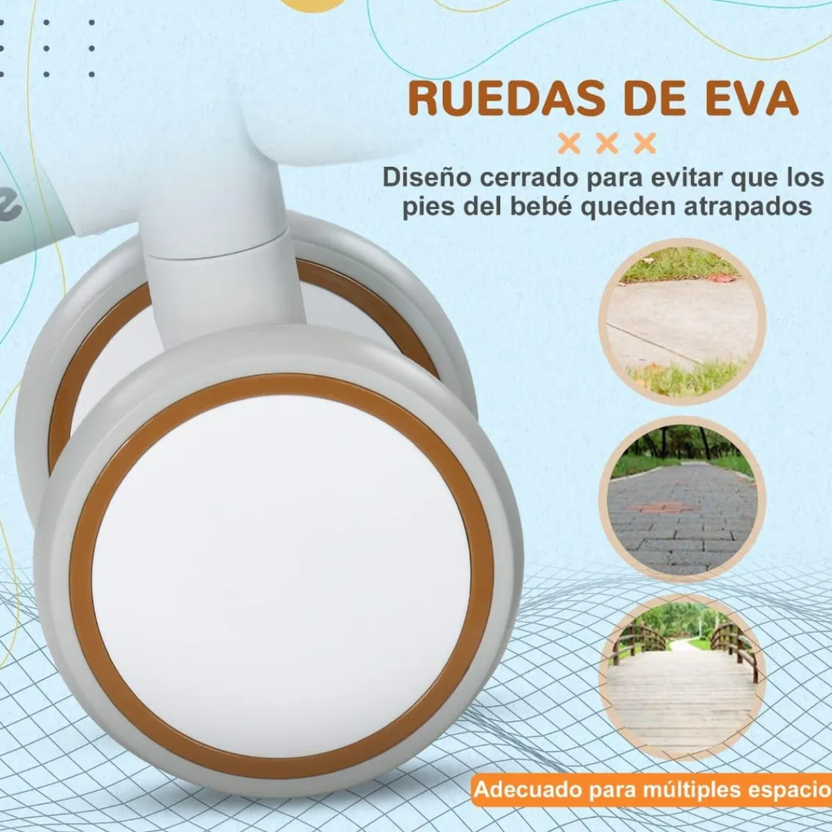 ¡Prepara a tu pequeño para la aventura con esta divertida bicicleta sin pedales! Ideal para desarrollar habilidades motoras como el equilibrio y la coordinación, esta bicicleta ofrece comodidad y seguridad. Sus ruedas silenciosas permiten que jueguen tanto en el interior como en el exterior, mientras el diseño con manillar con giro limitado y las ruedas cerradas protegen sus pies de accidentes.