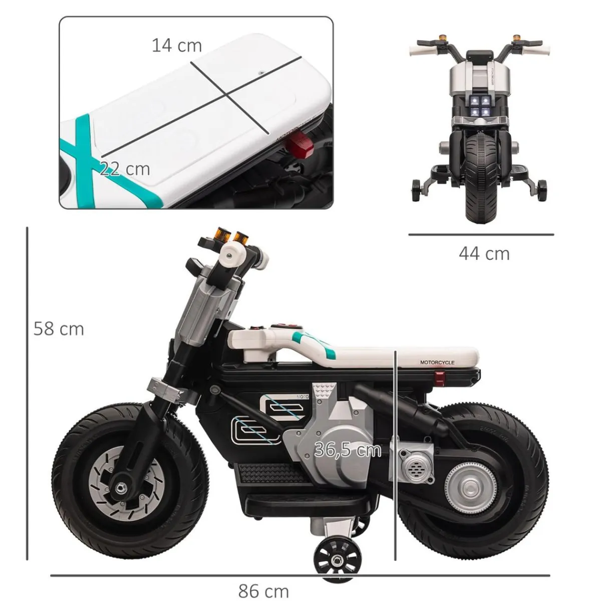 Homcom – Moto eléctriva 6V blanco/negro, solo hace falta pisar el pedal eléctrico para comenzar la aventura en esta bonita motocicleta eléctrica para niños.
