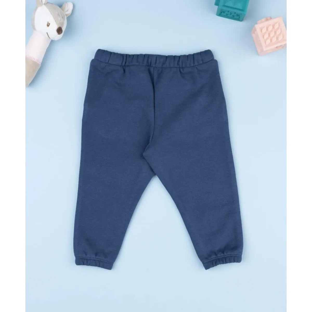 Pantalón felpado casual para niña, cómodo y versátil. Su color azul claro con estampado coordinado y bolsillos en corte transversal lo hace perfecto para combinar con otras prendas y para actividades del día a día.