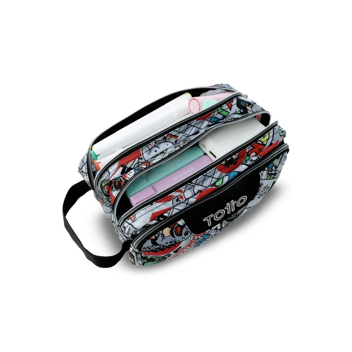 Este estuche cuenta con tres compartimentos principales que permiten organizar lápices, bolígrafos y otros útiles escolares de forma eficiente. Fabricado con materiales de alta calidad, garantiza durabilidad y resistencia al uso diario.