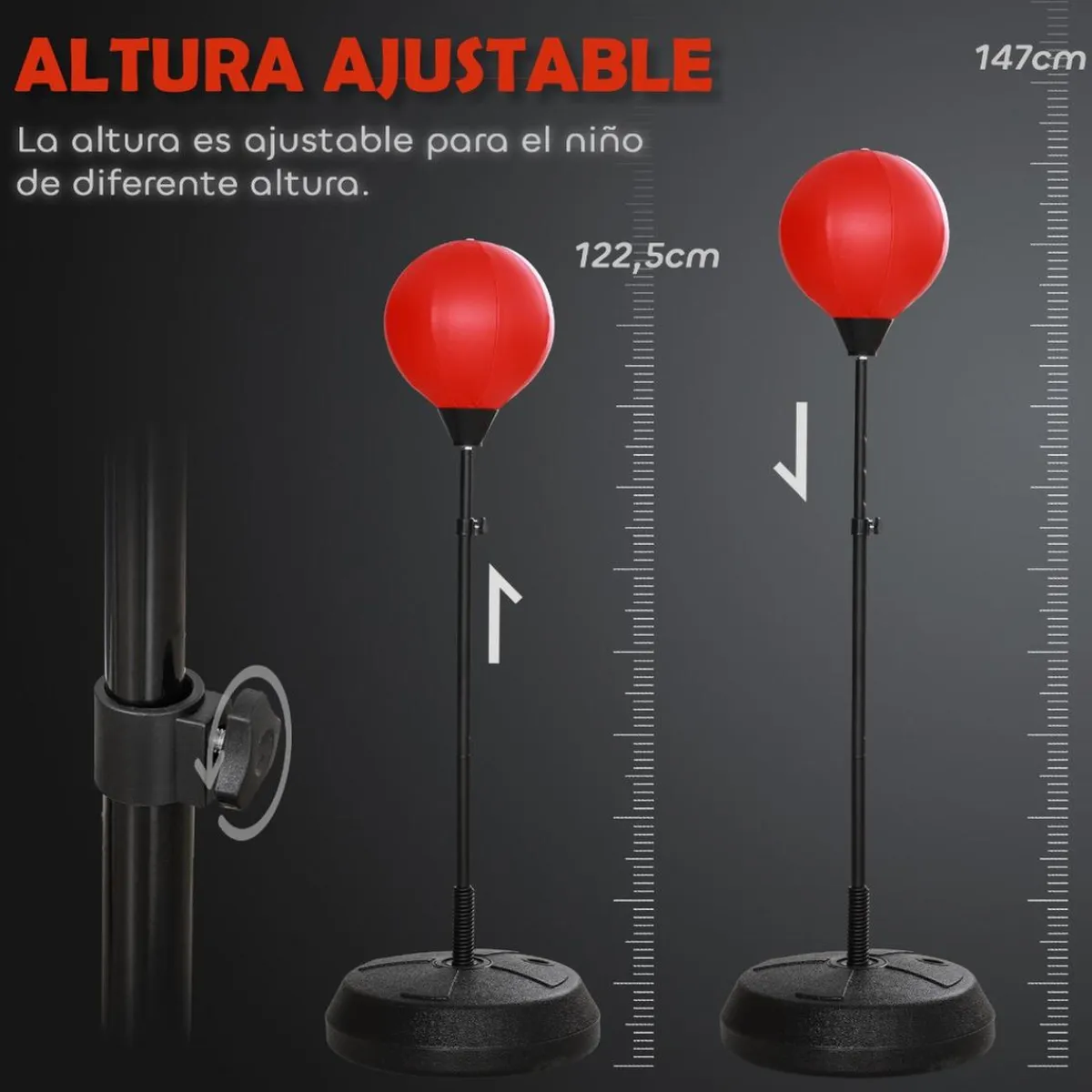 - Saco de boxeo ajustable que fomenta la actividad física y la resistencia.