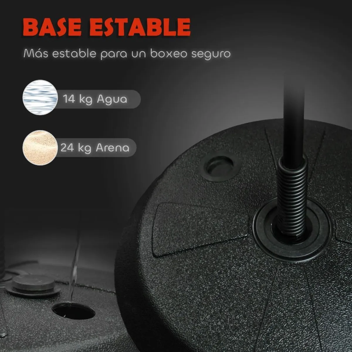 - Base que se puede rellenar con agua o arena para mayor estabilidad.