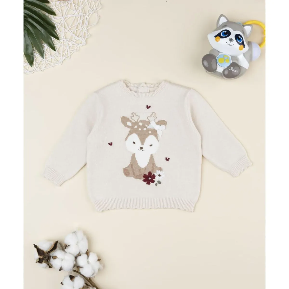 Jersey de niña beige con cervatillo bordado