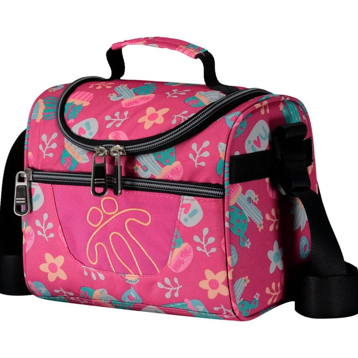 Tiene un compartimento interior con un material especial para llevar los tuppers, la meriendas, servilletas, cubiertos y más.