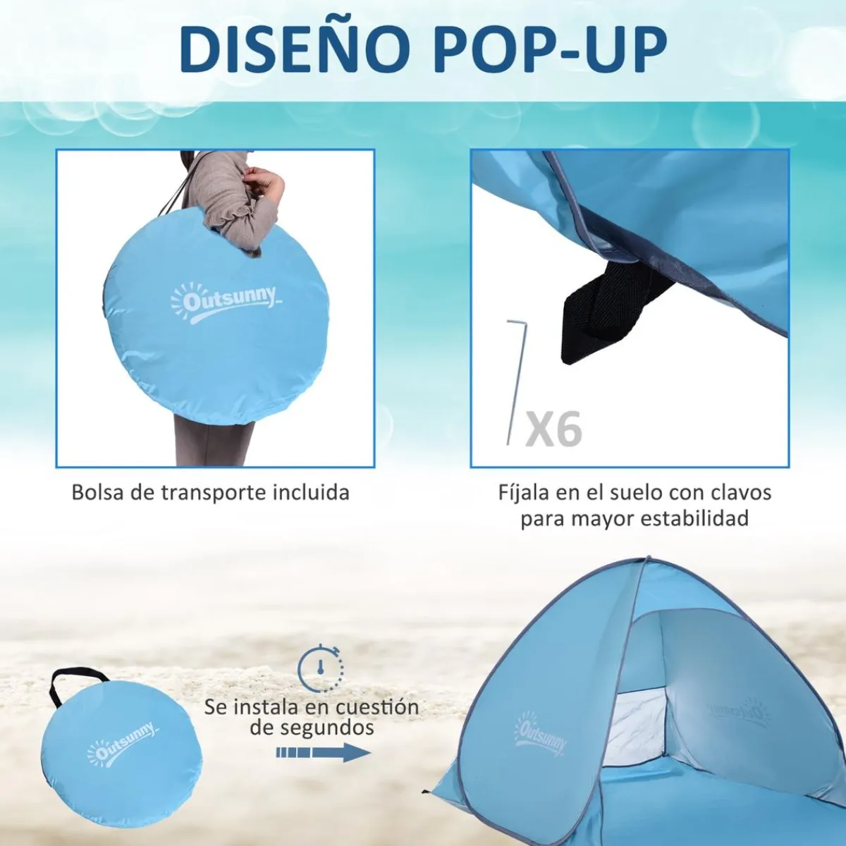 Outsunny – Tienda Pop Up playa Azul, este paravientos es la solución perfecta para resguardarte del sol y el viento en la playa, de camping, pícnic, etc. Adecuado para 2-3 personas.