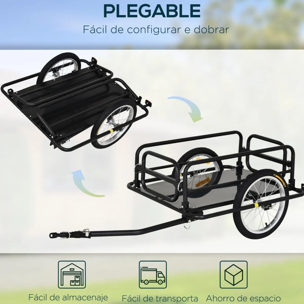 Outsunny – Remolque plegable para bicicleta, ideal para transportar hasta 40kg de carga. El remolque perfecto para el día a día.