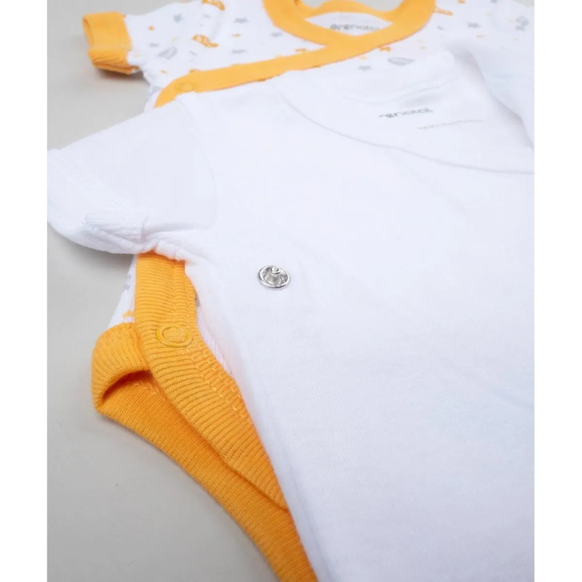 Paquete de dos bodies unisex de manga corta, con práctica apertura lateral con automáticos.