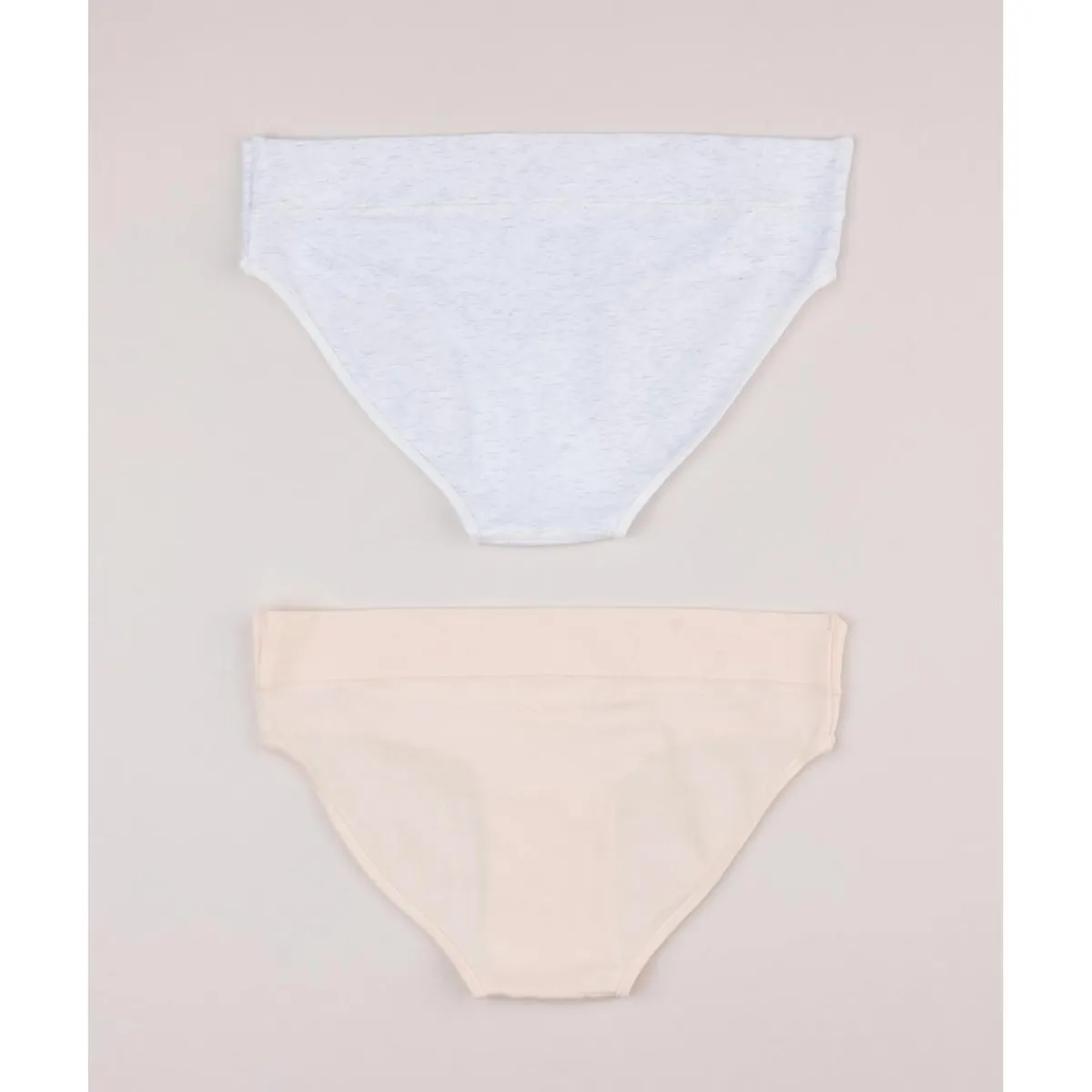 Pack básico 2 braguitas de cintura baja premamá. Las prendas vienen en blanco total y beige total y tienen un elástico en la cintura que garantiza cero molestias. Las braguitas son premamá, ideales para todo tipo de vestido. Accesorios no a la venta. La confección contiene solo la prenda de vestir.