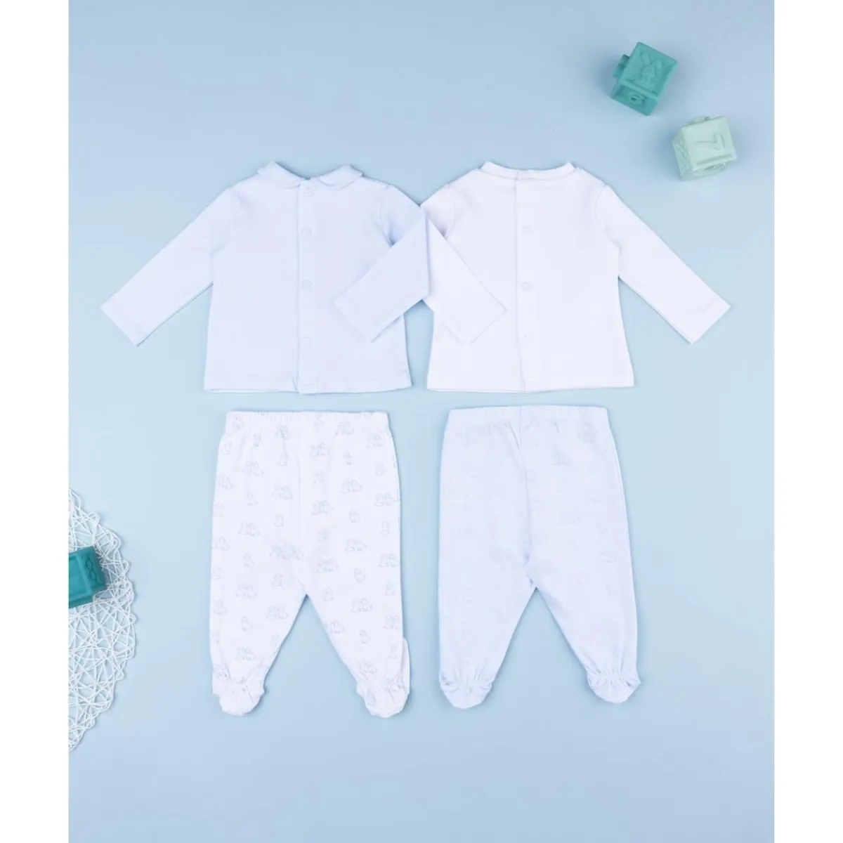 Perfectos para el día a día del recién nacido, estos conjuntos son ligeros, cómodos y fáciles de lavar. Aportan libertad de movimiento y un toque encantador a cada momento del bebé.