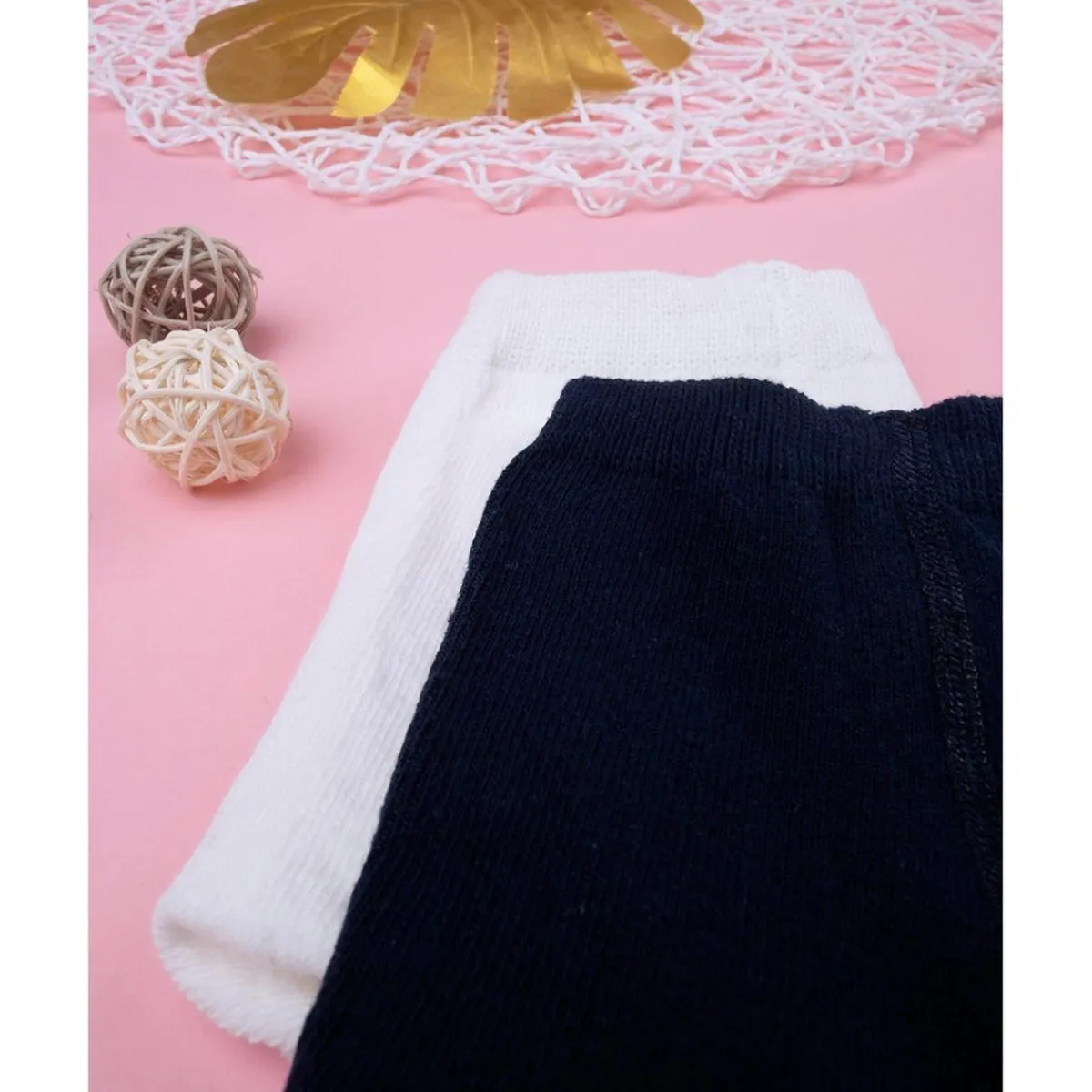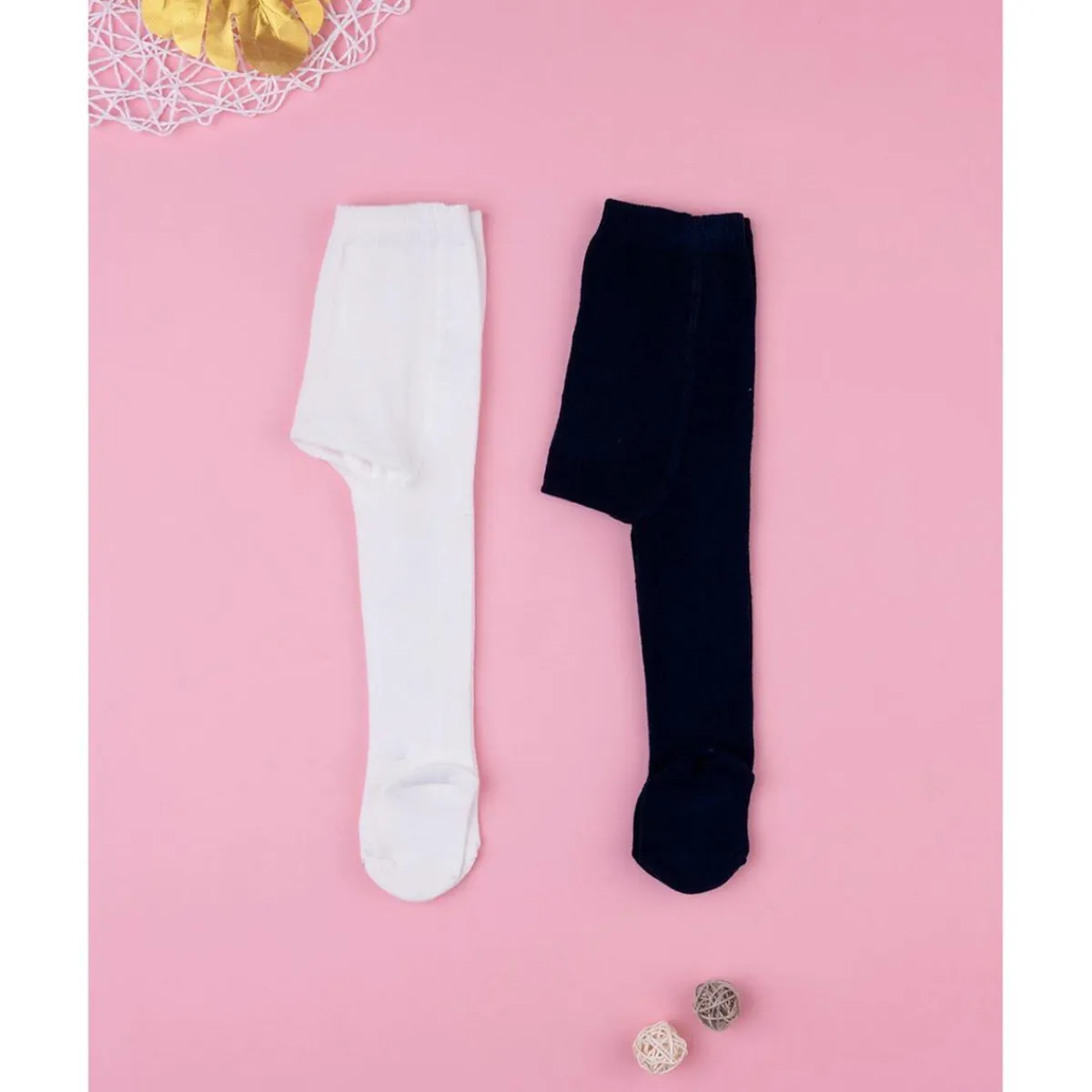 Práctico pack compuesto por dos cómodas medias de niña. Medias de algodón. Una prenda se desarrolla en color blanco liso, mientras que la otra en azul oscuro. Ajuste práctico y cómodo. Cintura elástica. Accesorios no a la venta. El paquete contiene solo la prenda de vestir.