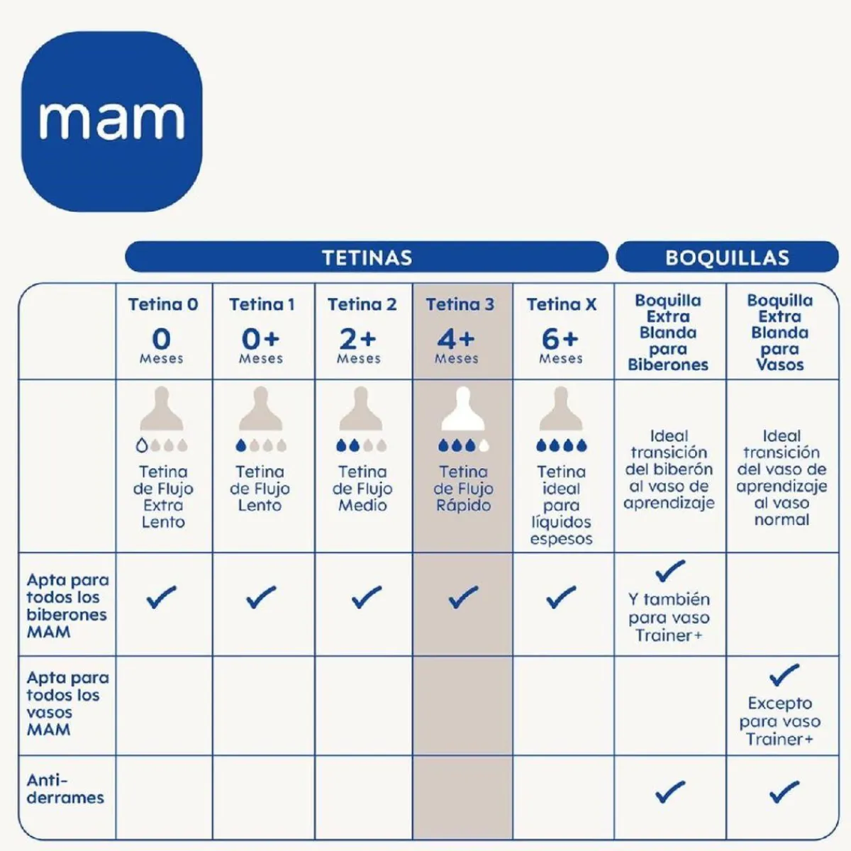 Mam – Pack 2 tetinas silicona nº 3, tetinas de flujo rápido para una combinación fácil entre el pecho y el biberón.ㅤ