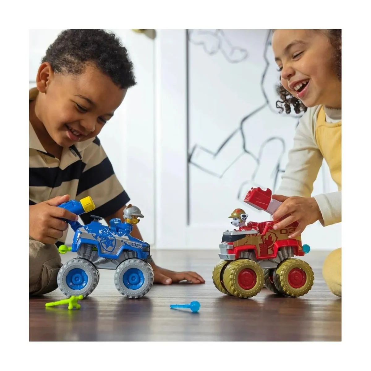 La Patrulla Canina – Pack de dos vehículos es el juguete perfecto para los pequeños aventureros que aman revivir las emocionantes misiones de rescate de sus héroes favoritos. Diseñado con ruedas sobredimensionadas y un auténtico estilo de la serie, este pack trae a Marcus y Chase listos para la acción.