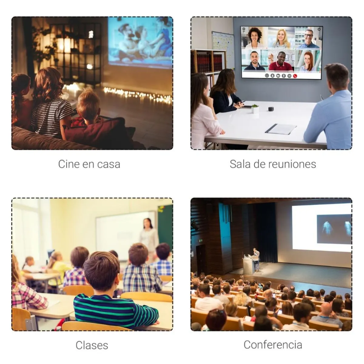 - Pantalla de proyector para ver películas en casa o hacer presentaciones en la empresa.