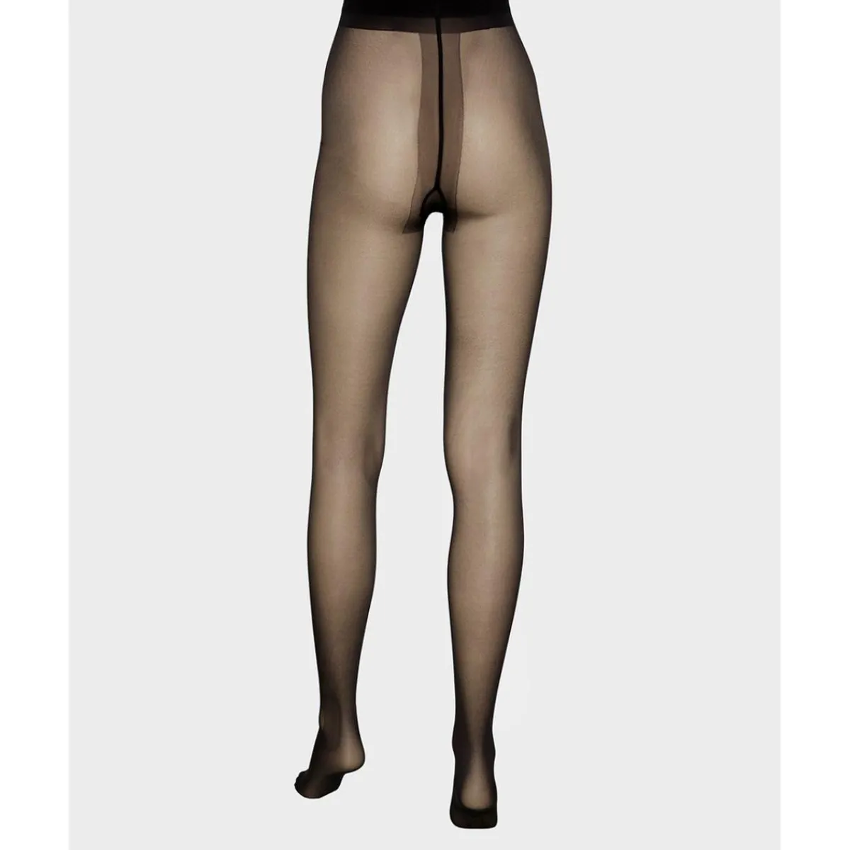 Cómodas pantimedias de multifibra de 20 DEN en color negro liso. Práctico elástico en la cintura y suave refuerzo en la parte delantera que envuelve el vientre durante todo el embarazo.