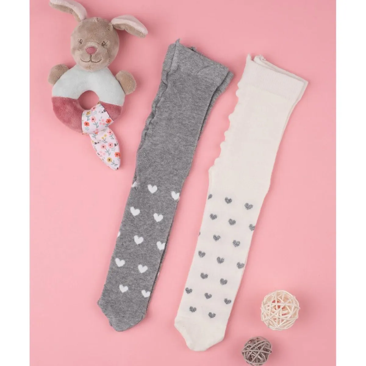 Dulce paquete de 2 pantis para niña. Las prendas se desarrollan sobre fondo blanco con estampado allover “Corazones” en tono gris claro y alternativamente sobre fondo gris claro con estampado allover «Corazones» en tono blanco. La vestimenta es suave y ajustable gracias al elástico en la cintura, los pantis garantizan cero molestias. Accesorios no a la venta. El paquete contiene solo la prenda de ropa.