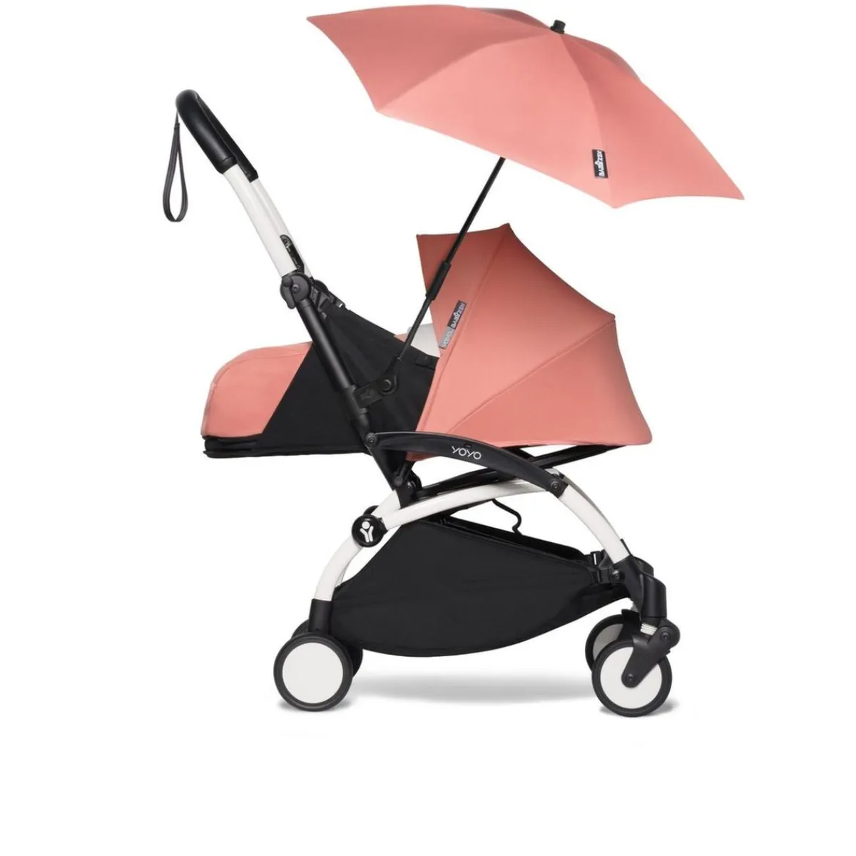 Esta sombrilla es compatible con todas las versiones del YOYO²: desde el kit recién nacido hasta el capazo, la funda 6+ y la silla de coche YOYO. Además, puede engancharse a la silla de coche, haciendo que sea una solución práctica y multifuncional.