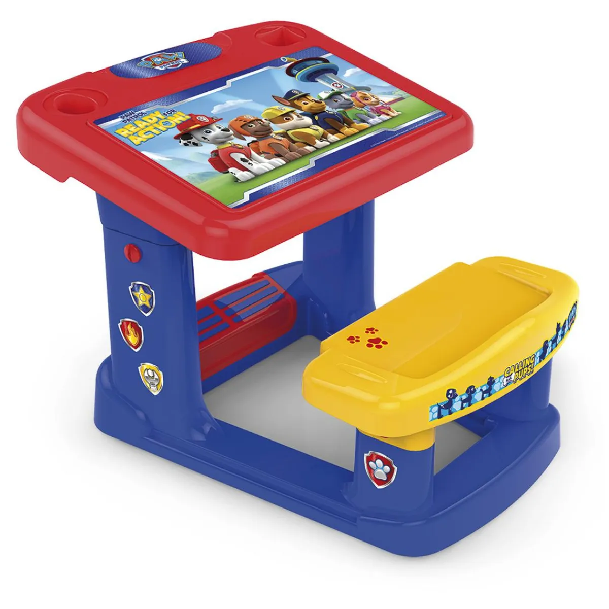 Mi primer pupitre de Patrulla Canina. Con amplia superficie de trabajo. Con alojamientos para los colores y rotuladores. Con reposapiés y amplio asiento. ¡Dibuja como un verdadero artista en el pupitre de Patrulla Canina! Edad recomendada + 3 años.