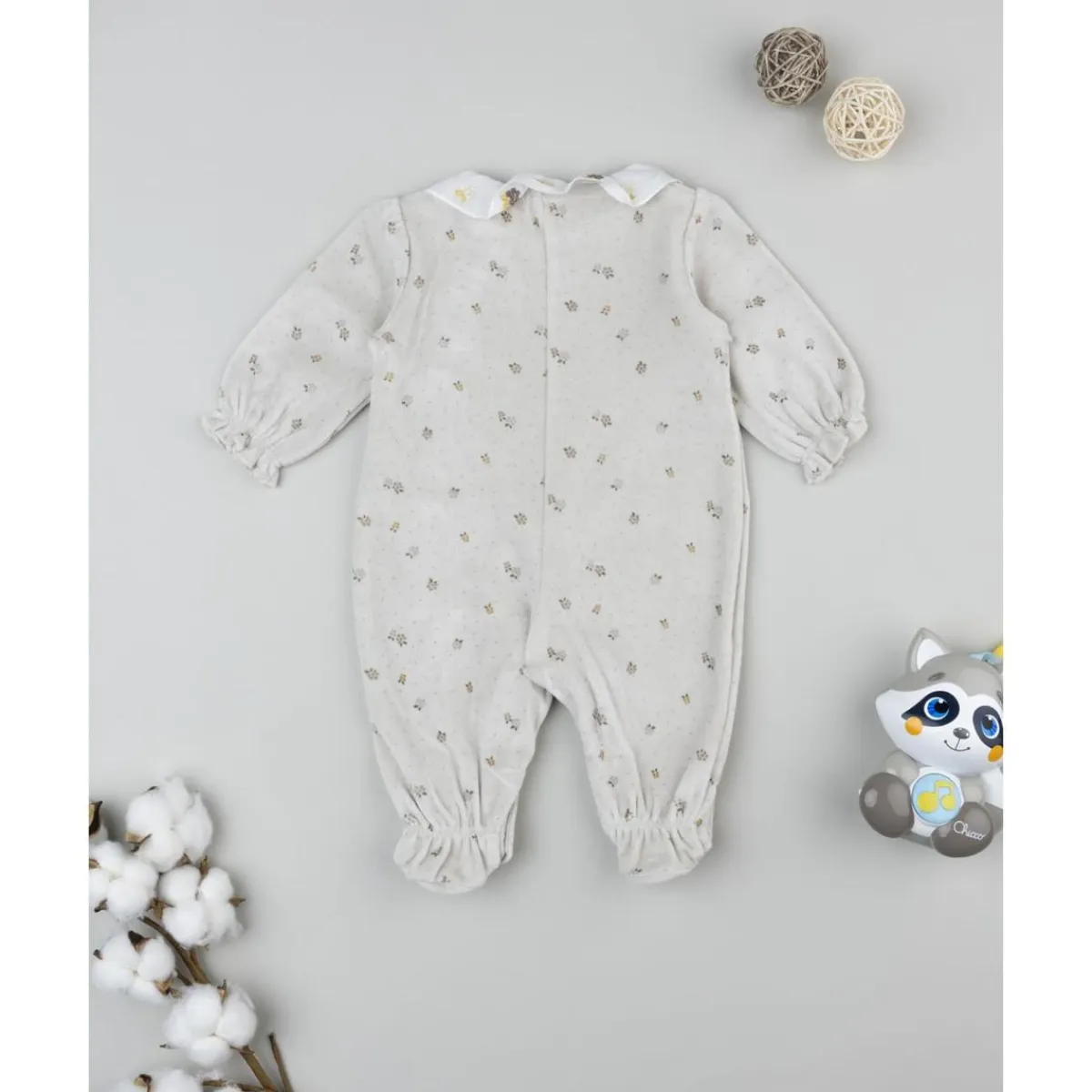 Este pijama de bebé de manga larga está confeccionado en felpa aterciopelada, ideal para mantener a la recién nacida abrigada y cómoda en sus primeros meses. Su diseño en marrón claro con bordados allover y cuello blanco bordado aporta un aire elegante y delicado. Incorpora pies cerrados y puños fruncidos para mayor ajuste y suavidad.