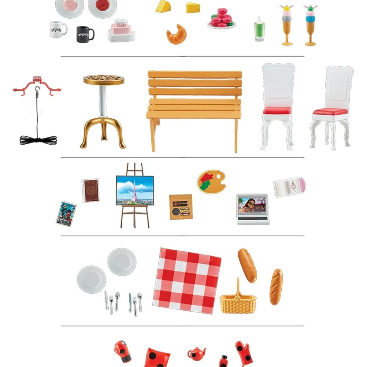 Adéntrate en las diferentes zonas de la torre. Disfruta de un divertido picnic en la base del monumento, visita el restaurante con vistas panorámicas, asómate al balcón para vigilar la ciudad o explora las tiendas. El set incluye más de 40 accesorios para que imagines un sinfín de historias y aventuras con Ladybug y todos tus personajes preferidos de Miraculous.