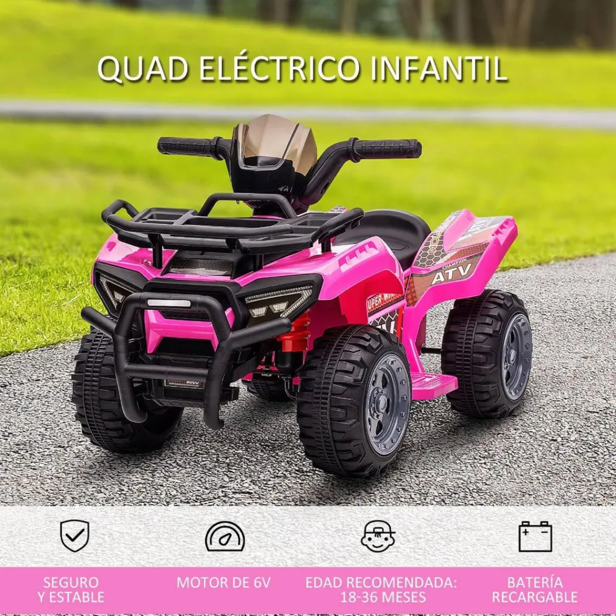 Homcom – Quad eléctrico 6V rosa, un Quad equipado con funciones realistas para fomentar la imaginación y el espíritu aventurero del niño.
