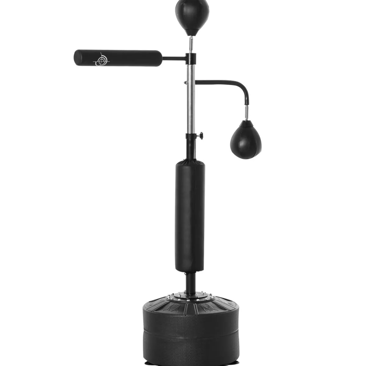 - Estructura de acero resistente, con 2 peras de boxeo, un saco principal y un brazo recubierto de cuero PU con costura reforzada