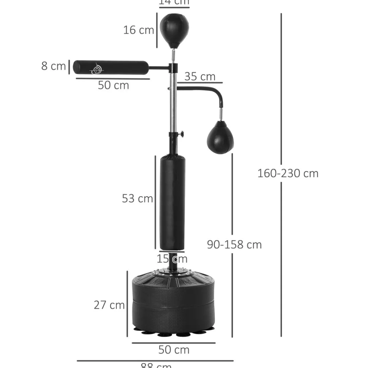 ¿Sabías que el boxeo es ideal para descargar tensiones y ejercitar distintos músculos del cuerpo? Con la práctica de esta disciplina, mejoramos la flexibilidad, agilidad, reacción de movimientos, etc. Además, con este saco de boxeo con soporte con barra giratoria de Homcom, podrás realizar un entrenamiento integral y profesional en casa. Cuenta con un saco central, dos peras de boxeo y una barra giratoria. Y la base se puede llenar con agua o arena para mayor estabilidad.