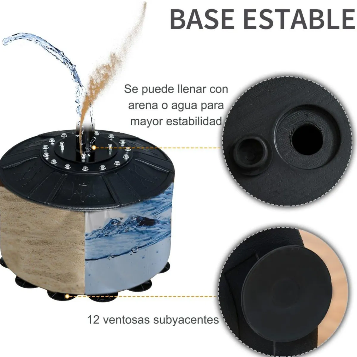 - Para mejorar la estabilidad, la base se puede llenar con 45 kg de arena, 30 litros de agua o 40 kg con mezcla de agua y arena