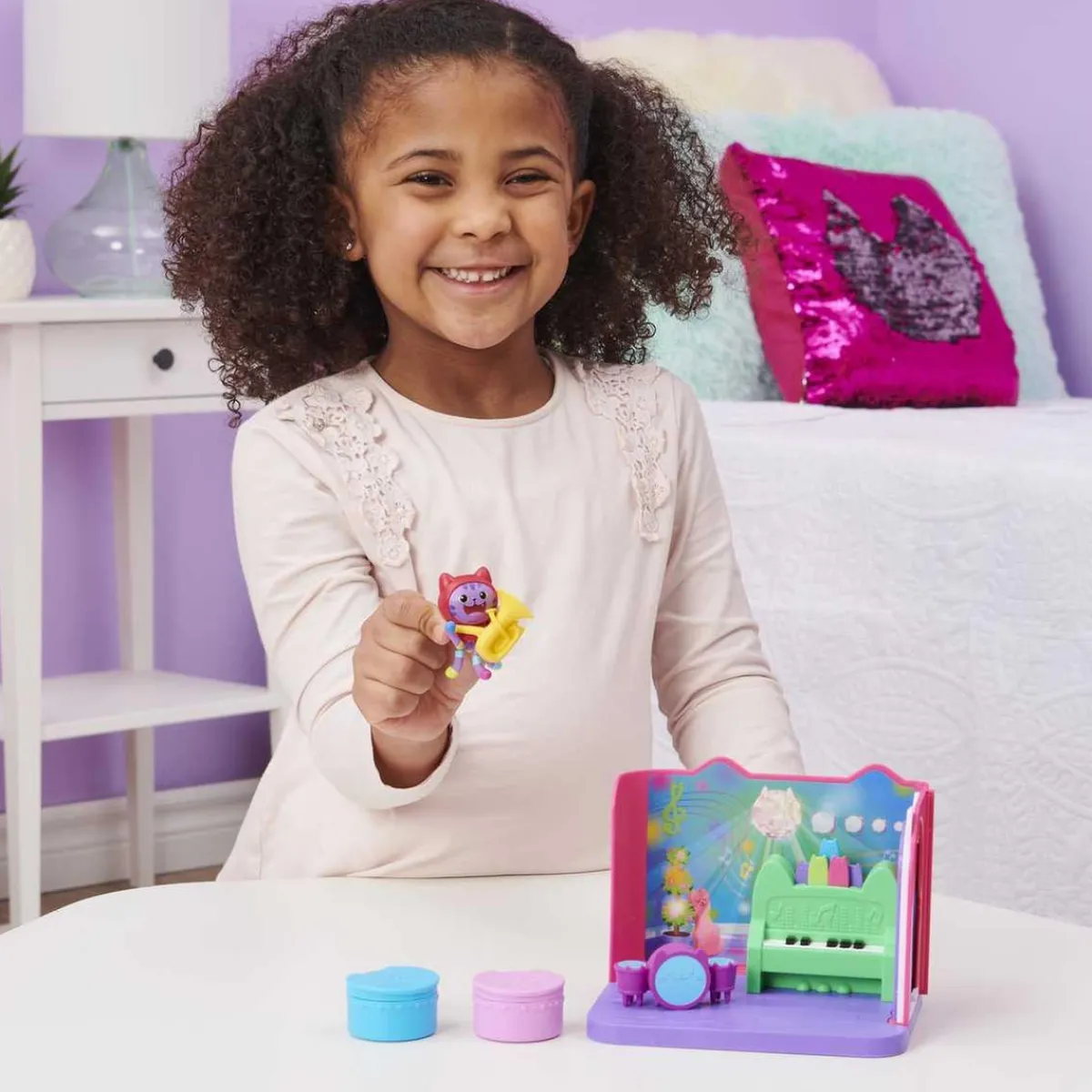 Con la Sala de Música de La Casa de Muñecas de Gabby, los niños se sumergirán en un mundo lleno de diversión, música y creatividad, lo que hará que vivan momentos mágicos e inolvidables mientras juegan y aprenden con Gabby y DJ Catnip.