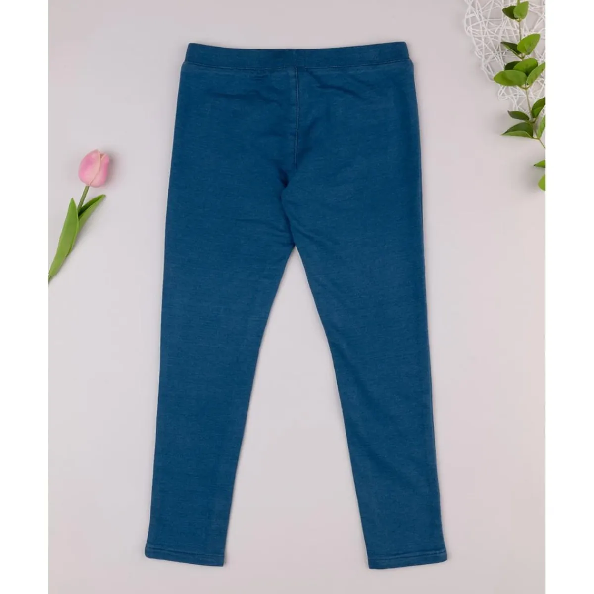 Práctico y cómodo jegging en denim azul. Cuenta con dos bolsillos traseros y cintura elástica para un ajuste perfecto. Ideal para looks casuales y fáciles de combinar.