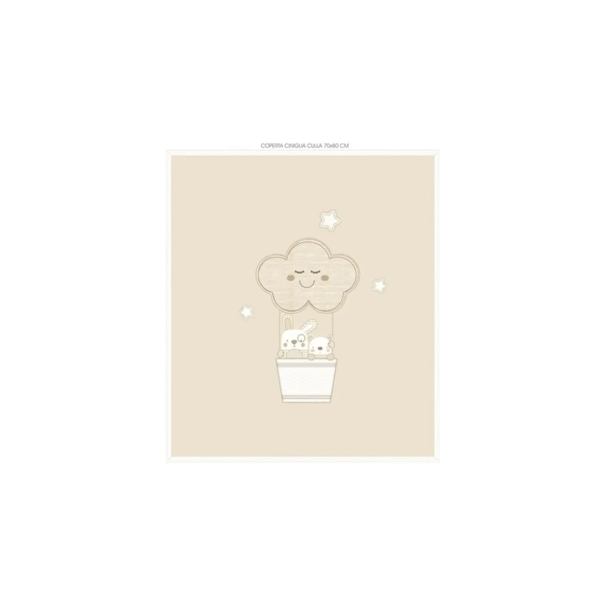 Esta tierna manta de chenilla para cuna o carrito está decorada con un diseño de globo aerostático y animalitos, proporcionando calidez y confort a tu bebé.