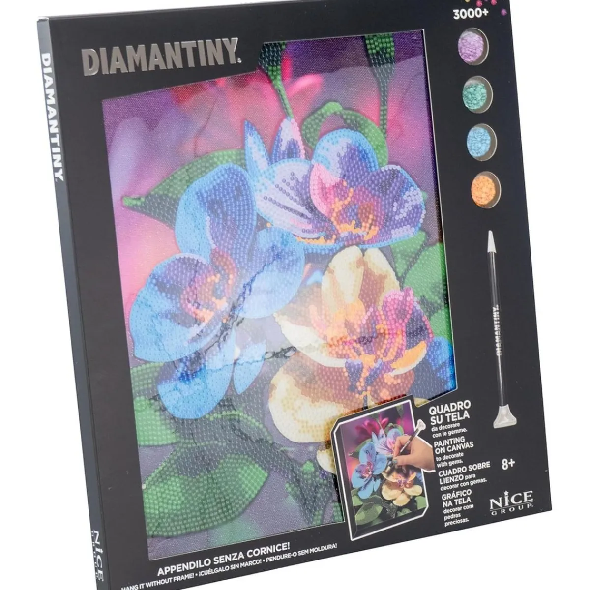 Este kit es perfecto para que los niños se sumerjan en una actividad artística envolvente. Con más de 3000 cristales coloridos incluidos, cada cuadro se convierte en una obra maestra personalizada. Los pequeños podrán seguir una sencilla guía numérica, asegurando que cada gema se coloque en el lugar correcto para dar vida a diseños vibrantes y únicos.