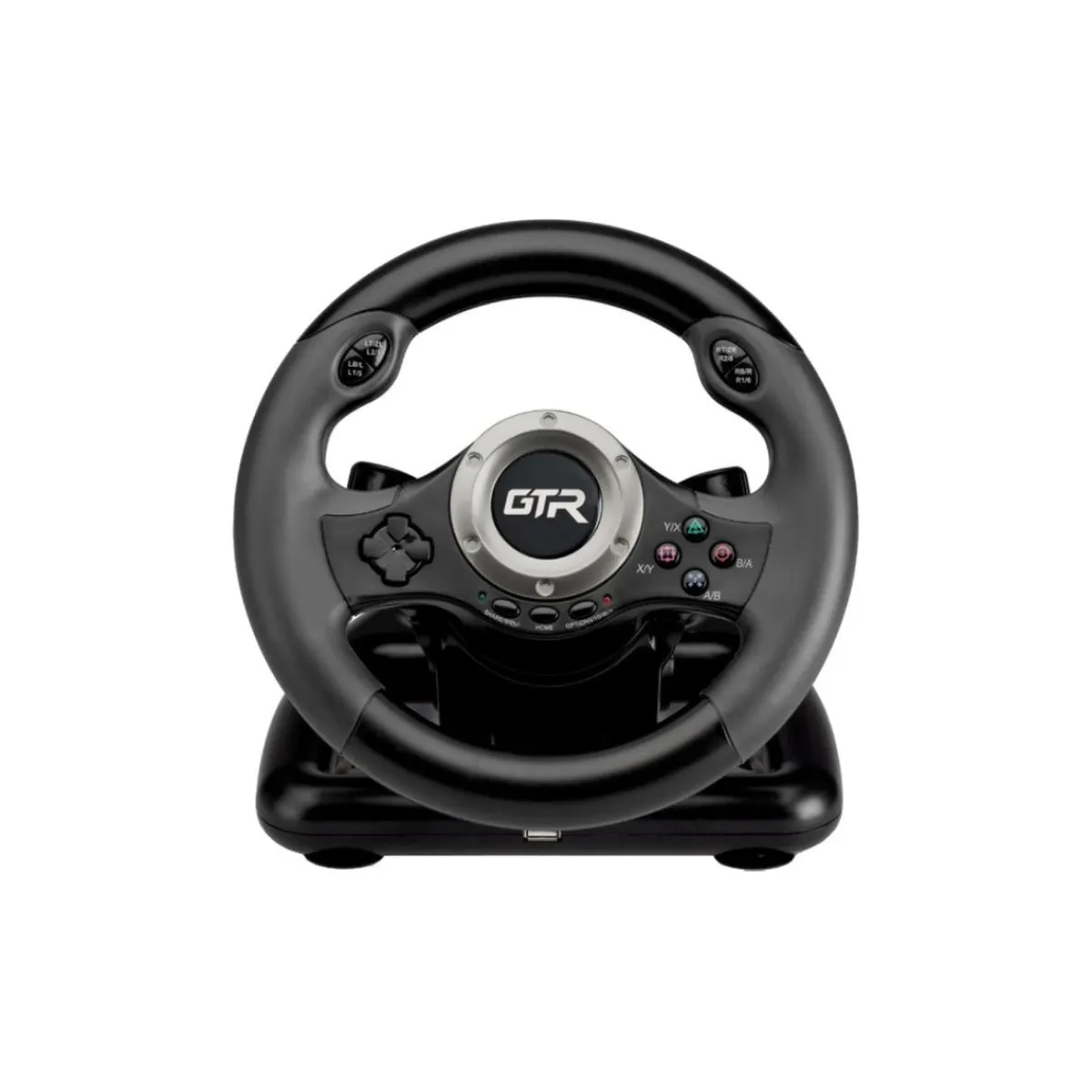 Volante Jinshu GTR para videoconsolas Multiplataforma. Este volante tiene 180º giro de volante y tiene un tamaño de 23 cm para un mayor realismo, además de un acabado premium en goma, con textura para un mejor agarre en la conducción.