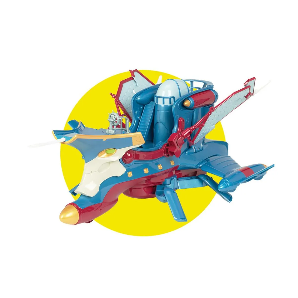 El vehículo Chaos tiene 4 transformaciones para luchar contra los villanos en cualquier superficie: navegación, volador, terrestre o submarino.