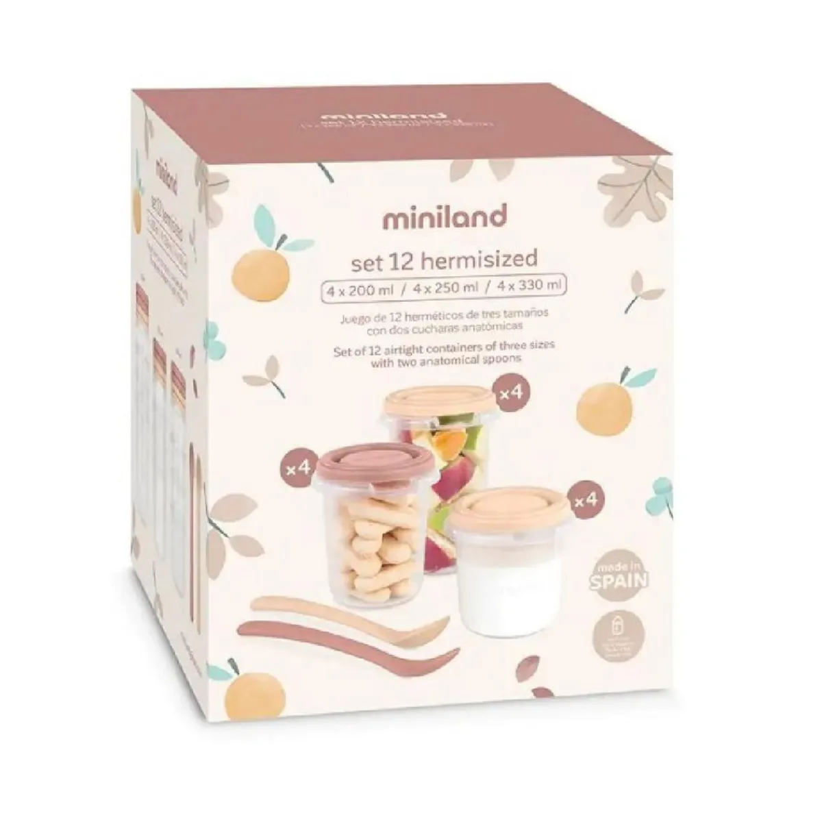 Descubre este práctico set de 12 recipientes herméticos Miniland de la colección Valencia, especialmente diseñado para guardar, congelar y transportar la comida de tu bebé de forma segura y sencilla. Con este conjunto, tendrás la solución perfecta para llevar las papillas, leche materna o sopas a donde quiera que vayas, garantizando siempre una conservación óptima de los alimentos.