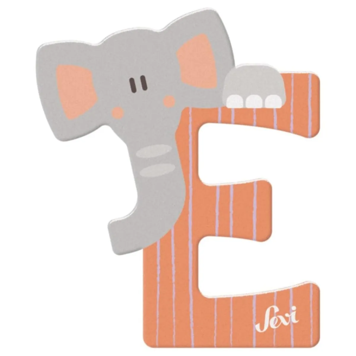 La E es ideal para formar nombres, palabras divertidas o decorar la habitación con un toque único. Además, su simpático elefante la hace aún más especial.