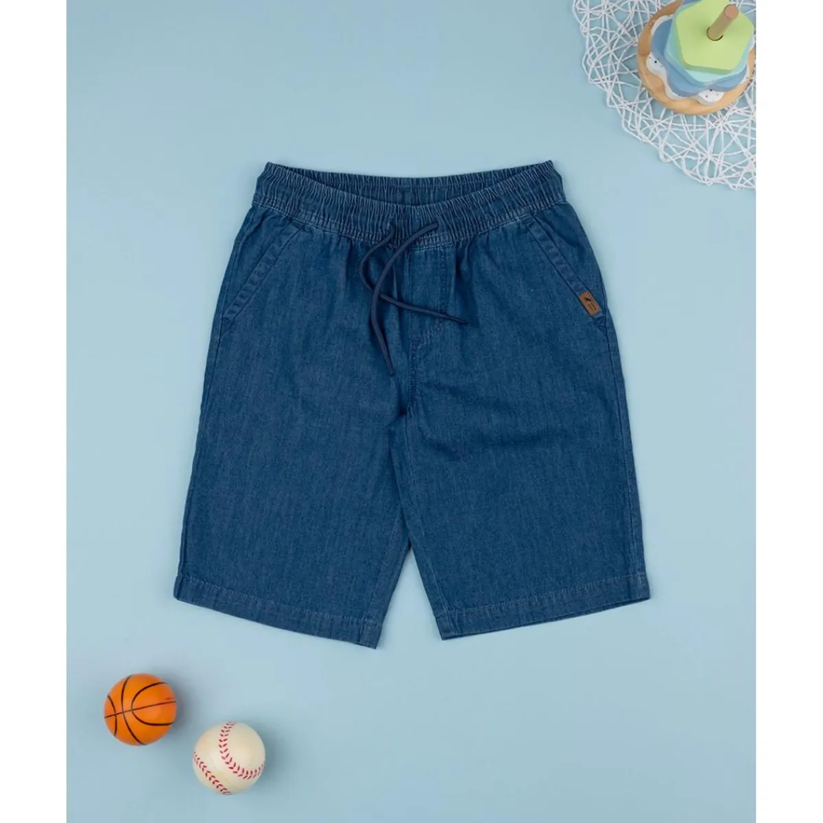 Short casual de chambray para niño. La prenda se desarrolla en total azul denim oscuro con bolsillos de corte transversal. El ajuste es suave y ajustable gracias al cordón en la cintura con cordón a juego. Los shorts de niño son adecuados para ocasiones casuales y fácilmente combinables. Accesorios no a la venta. El paquete contiene solo la prenda de vestir.