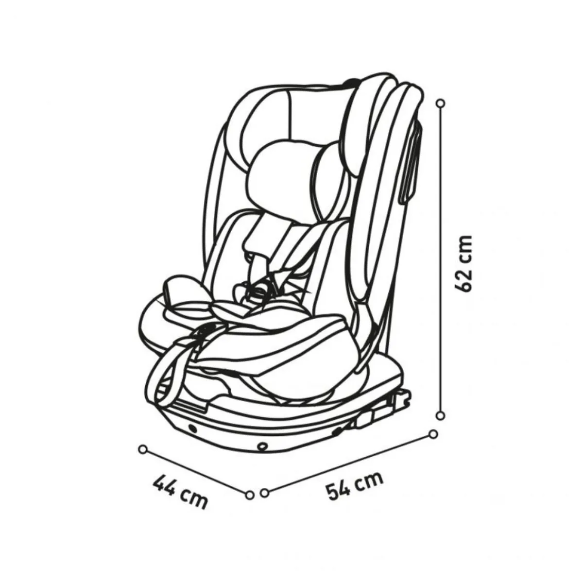 Asalvo – Silla de auto Panafix Negra 40-150 cm. Para niños de 40 a 150 cm de estatura. Ofrece una instalación segura con el sistema Isofix y top tether, brindando tranquilidad a los padres. Este asiento giratorio 360º permite una versatilidad excepcional, y su capacidad de orientación contramarcha hasta los 105 cm (18 kg) garantiza una seguridad óptima.