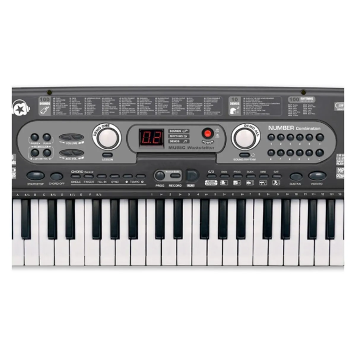 Este teclado musical no sólo cuenta con 54 teclas, sino que además incluye la increíble cantidad de 100 sonidos diferentes para probar. Este sintetizador no está limitado a los sonidos de piano, sino que ofrece todo un mundo de posibilidades. ¡Imagina todas las melodías que tu hijo puede crear con 100 opciones de sonido a su disposición!