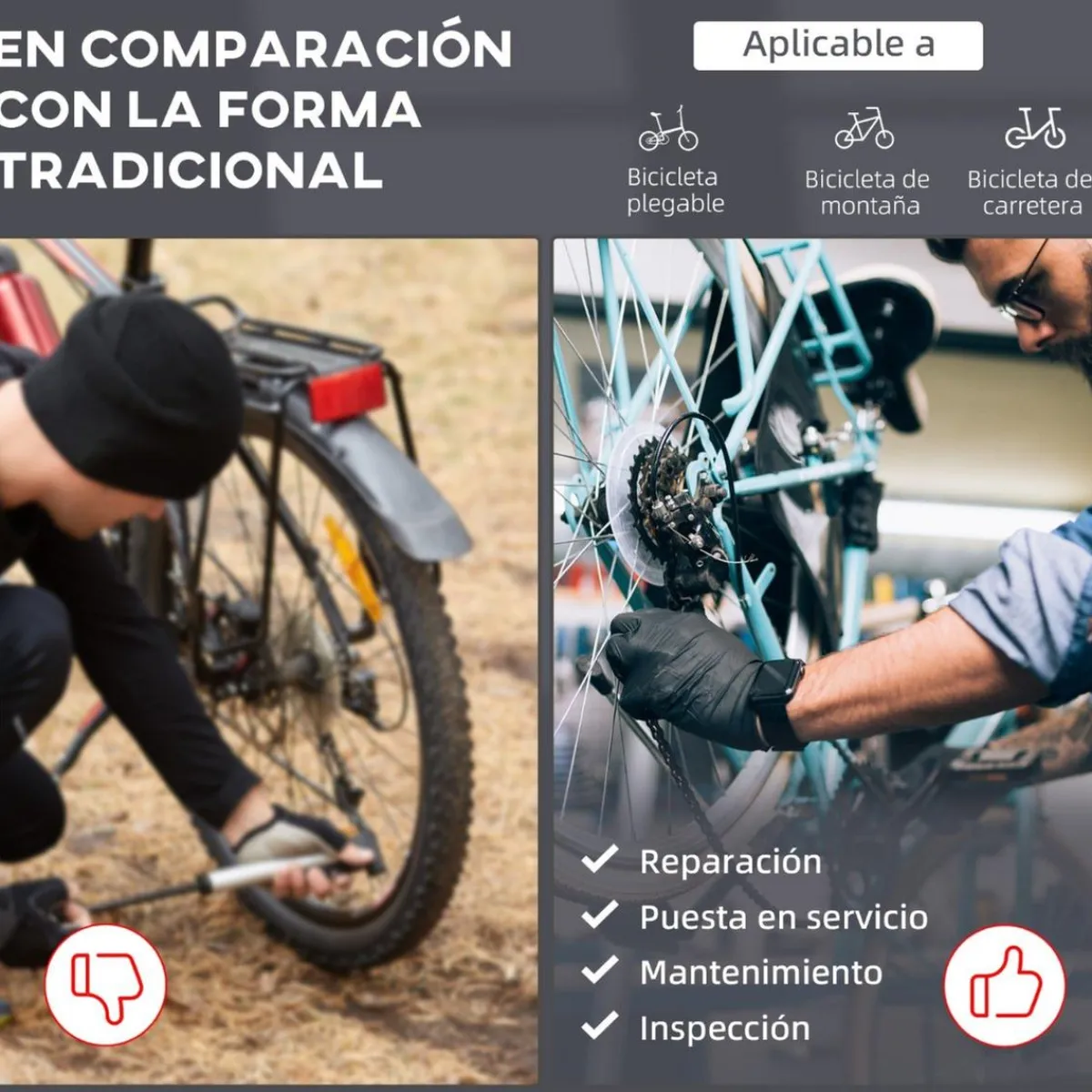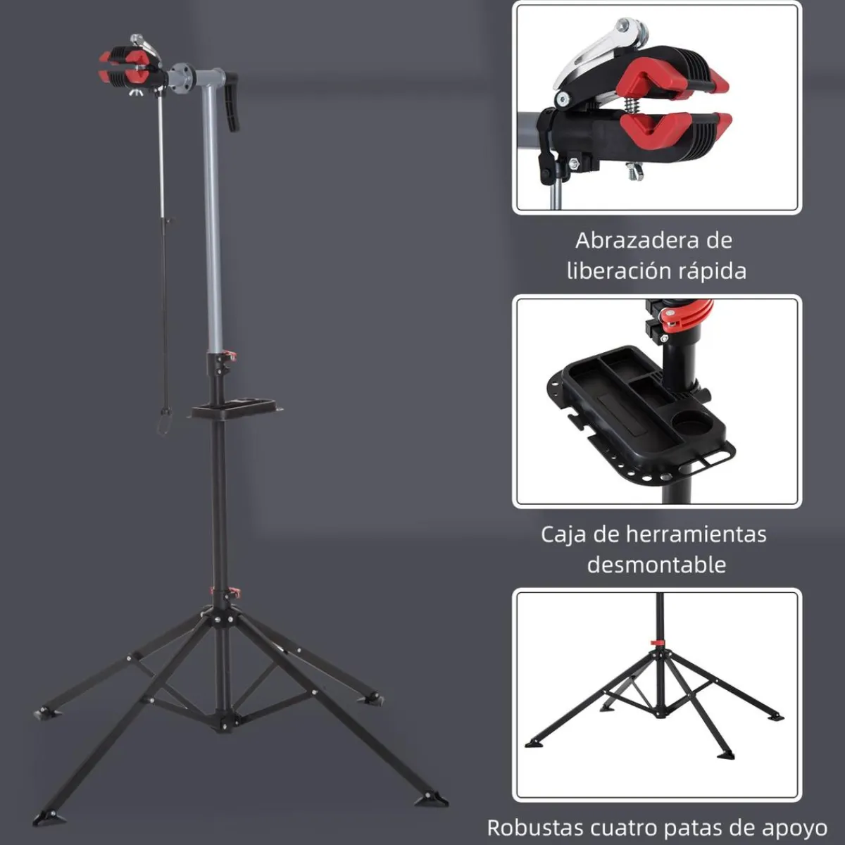 Homcom – Soporte para reparación de bicicleta, un soporte para bicicletas, para poder realizar cómodamente y de forma segura la reparación y mantenimiento de tu bicicleta.