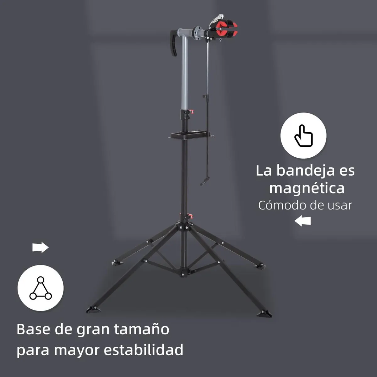 Ya sea porque eres un aficionado al ciclismo y siempre quieres tener tu bicicleta a punto o porque estás pensando en montar tu propio negocio, este soporte para reparación de bicicletas de Homcom te da oportunidad de llevarlo a la práctica. Como su abrazadera gira 360° podrás poner la bicicleta en el ángulo que te resulte más cómodo para trabajar. Sus patas en forma de trípode resultan muy estables y como extra se incluye una bandeja extraíble para herramientas que resulta de lo más práctica.