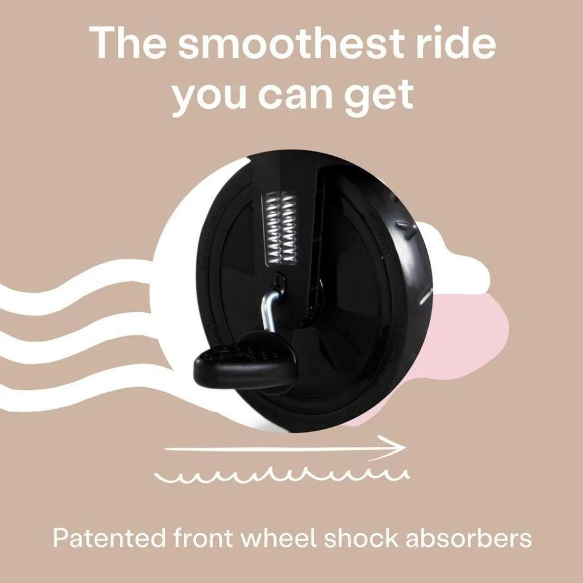- Rueda delantera amortiguada para una conducción suave.