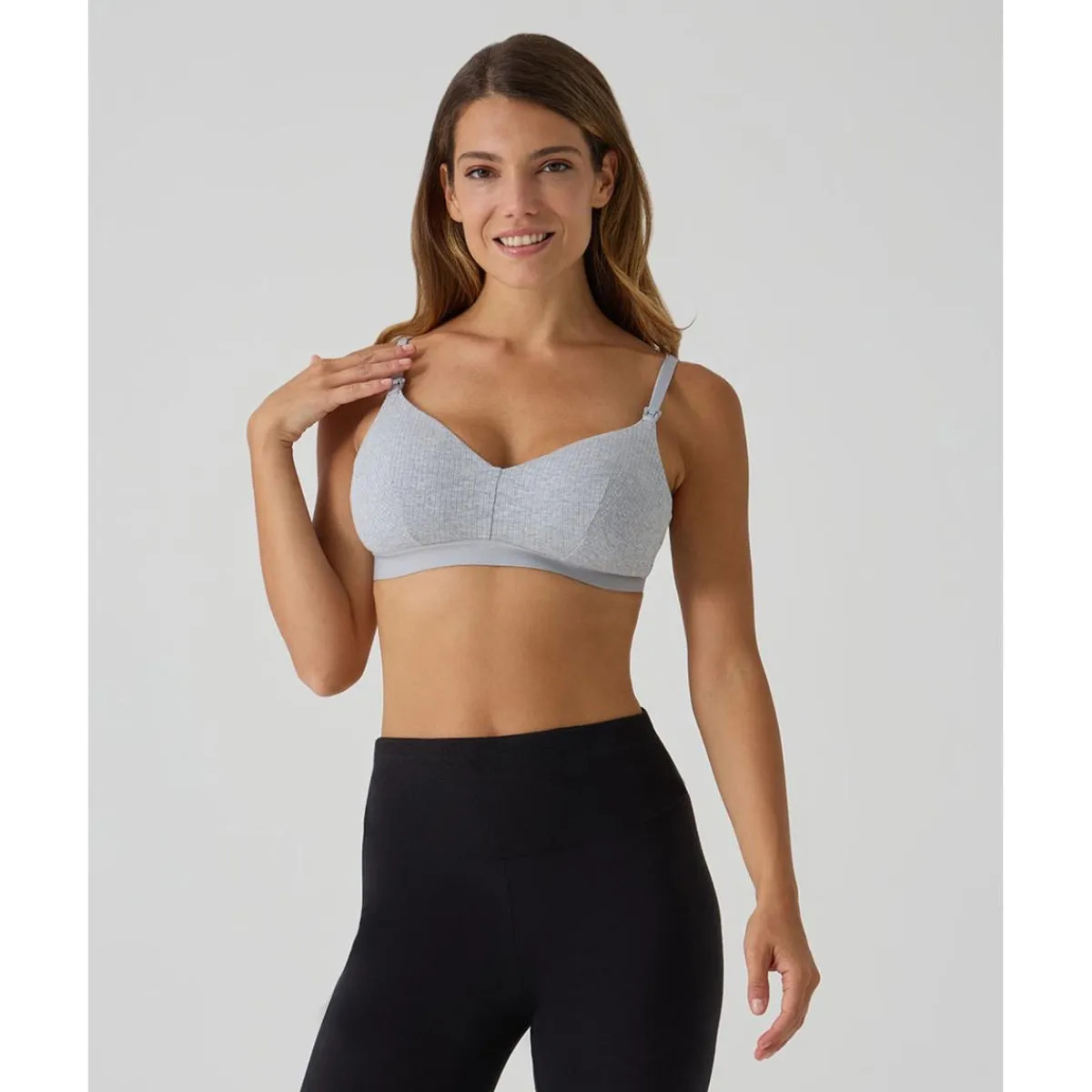 Este sujetador de lactancia en gris claro está diseñado para ofrecer comodidad, soporte y funcionalidad a la futura mamá. Con copas desmontables y apertura con ganchos, facilita la lactancia en cualquier momento, mientras que las tiras ajustables permiten un ajuste perfecto y cómodo. Su tejido de canalé, compuesto por 98% algodón y 2% elastano, garantiza suavidad, elasticidad y transpirabilidad durante todo el día. La prenda se cierra en la espalda con prácticos ganchos y proporciona un soporte adecuado sin comprometer el confort. Ideal para el uso diario, combina practicidad y confort en una pieza esencial del armario premamá.