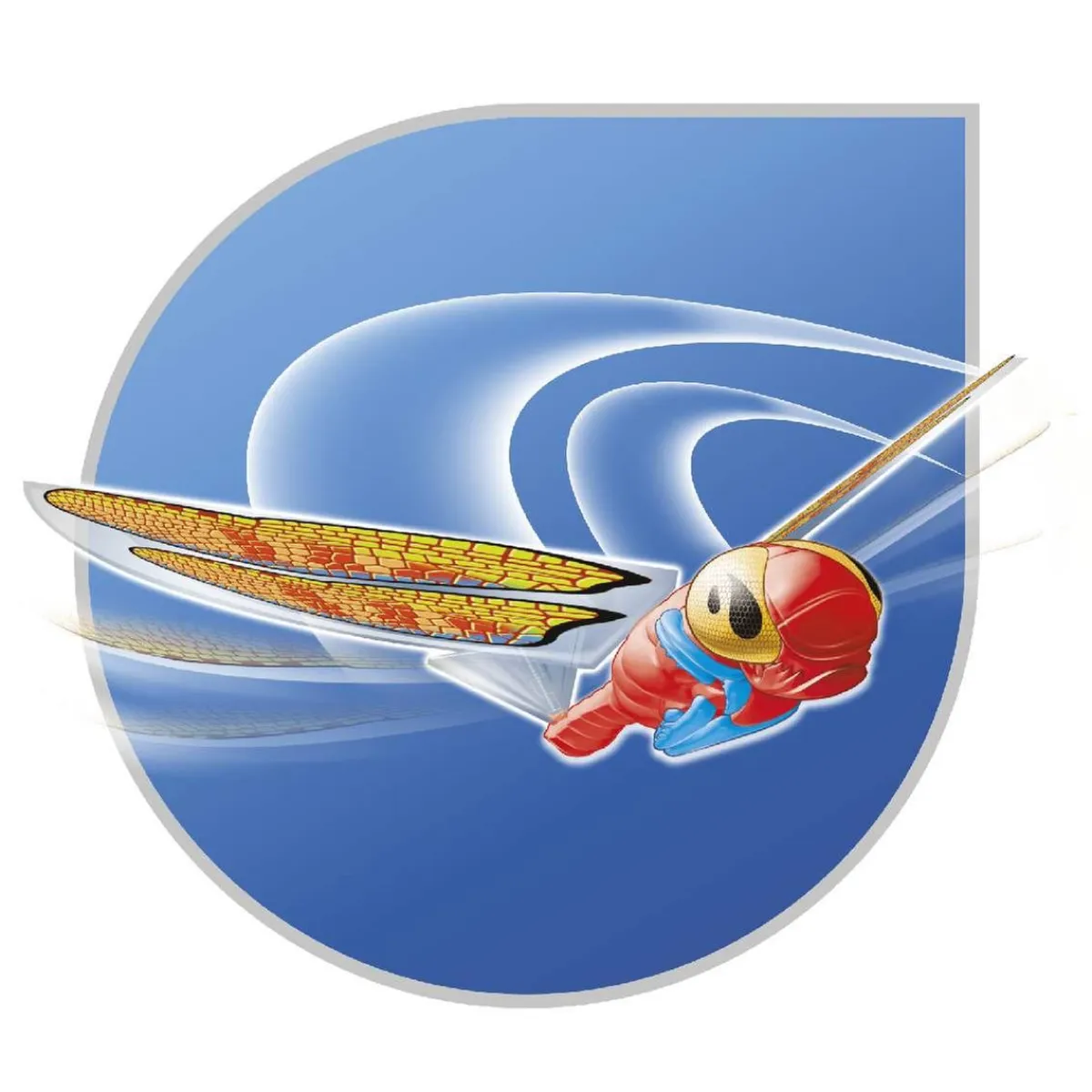 ¡Diviértete con esta increible libélula! Cuando la enciendas, comenzará a batir sus alas rápidamente. ¡Lánzala lejos y mira cómo vuela como una verdadera libélula!