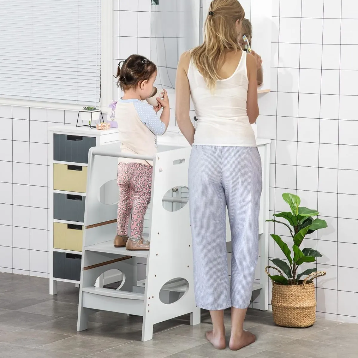 Si quieres fomentar la autonomía de los pequeños de la casa a edades tempranas, esta torre de aprendizaje de HOMCOM te será de gran ayuda. Ideal para tener en la cocina, baño, comedor, etc. Proporciona un taburete seguro y regulable a su medida para que puedan realizar actividades cómodamente. Hábitos como lavarse la cara o los dientes, serán más fáciles de hacer. O que ayuden a los adultos a cocinar, por ejemplo.
