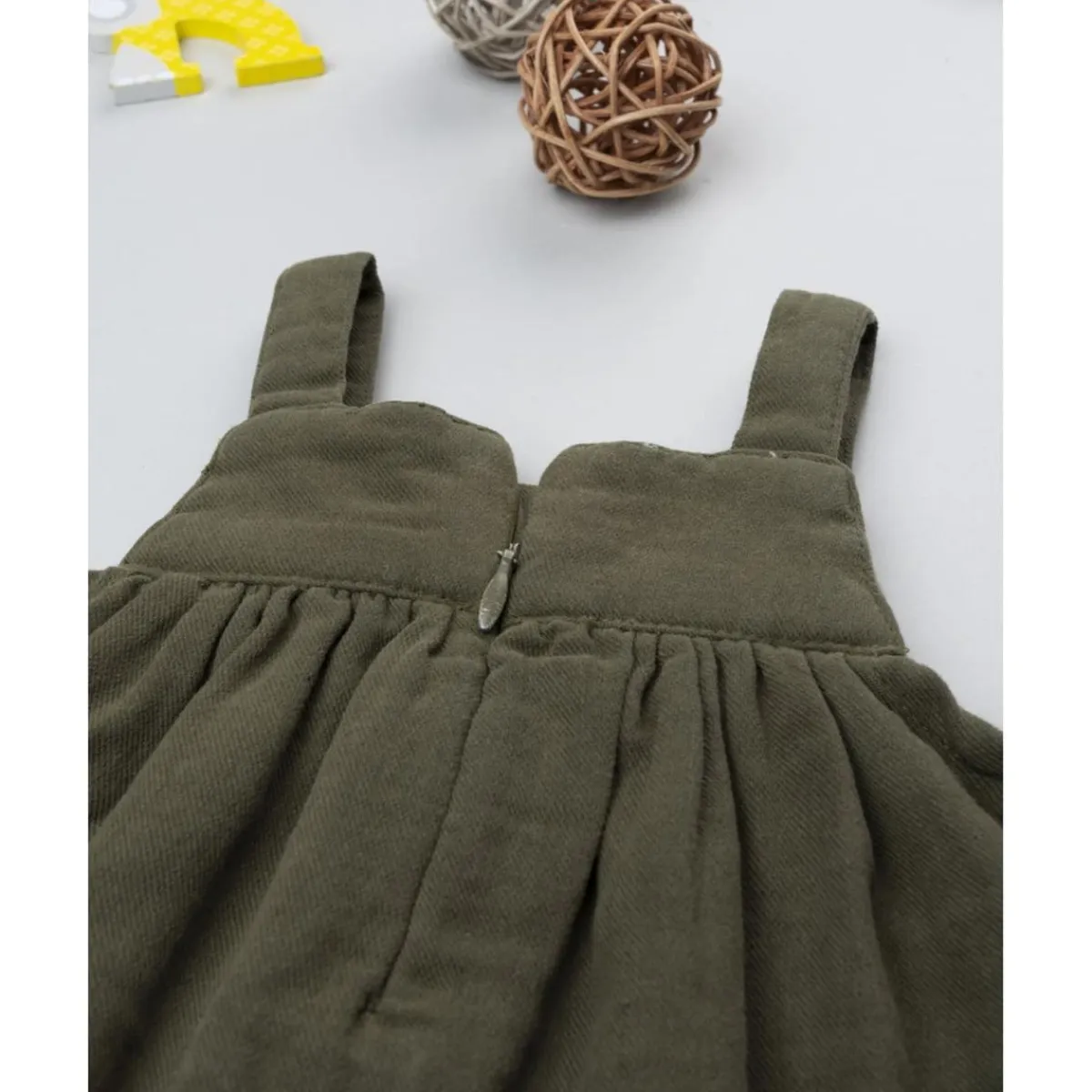 El vestido pichi verde con bordado es una prenda versátil y cómoda, ideal para los looks diarios o más cuidados. Confeccionado en twill de algodón, combina suavidad y resistencia. Su diseño con tirantes finos y cremallera trasera permite un ajuste práctico, mientras el bordado en tono coordinado añade un detalle delicado y elegante.