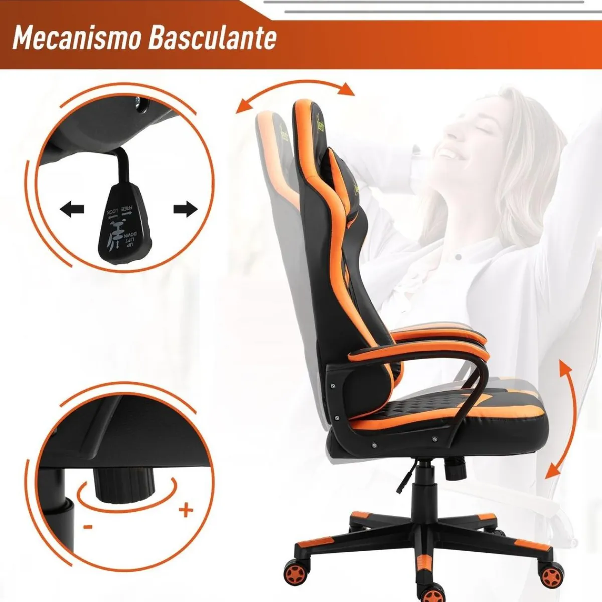 Vinsetto – Silla Gaming naranja-negro, una silla ergonómica y cómoda para pasar muchas horas frente la pantalla del ordenador.