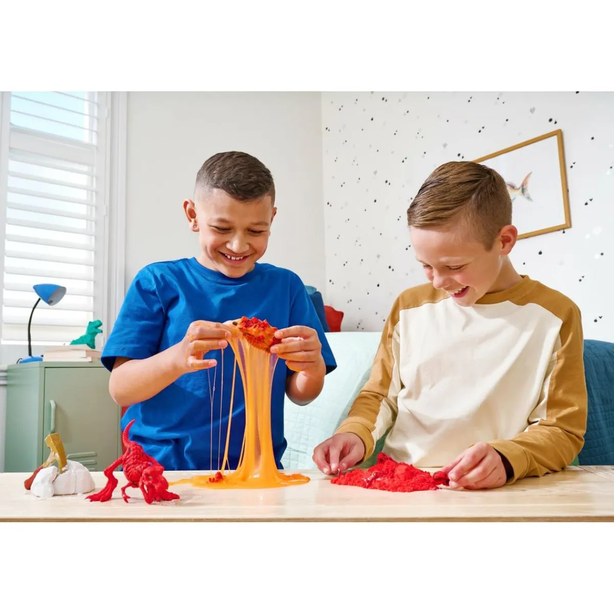 Cavar a través de la roca volcánica, la arena y la lava es una aventura en sí misma. Siente la emoción de encontrar cada pieza fósil oculta y la satisfacción de armar tu propio dinosaurio esqueleto.